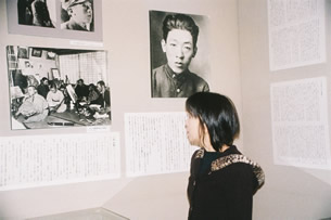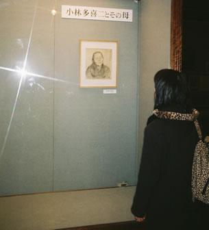 小樽文学館の小林多喜二コーナー入口にある母、 セキの写真である。 ここ、小樽文学館には、多喜二のまつげが残っている というデスマスクや、幼いころからの成長の記録などが 収められている。 セキさんの写真の前に立ち、動きを止めたままの三園。